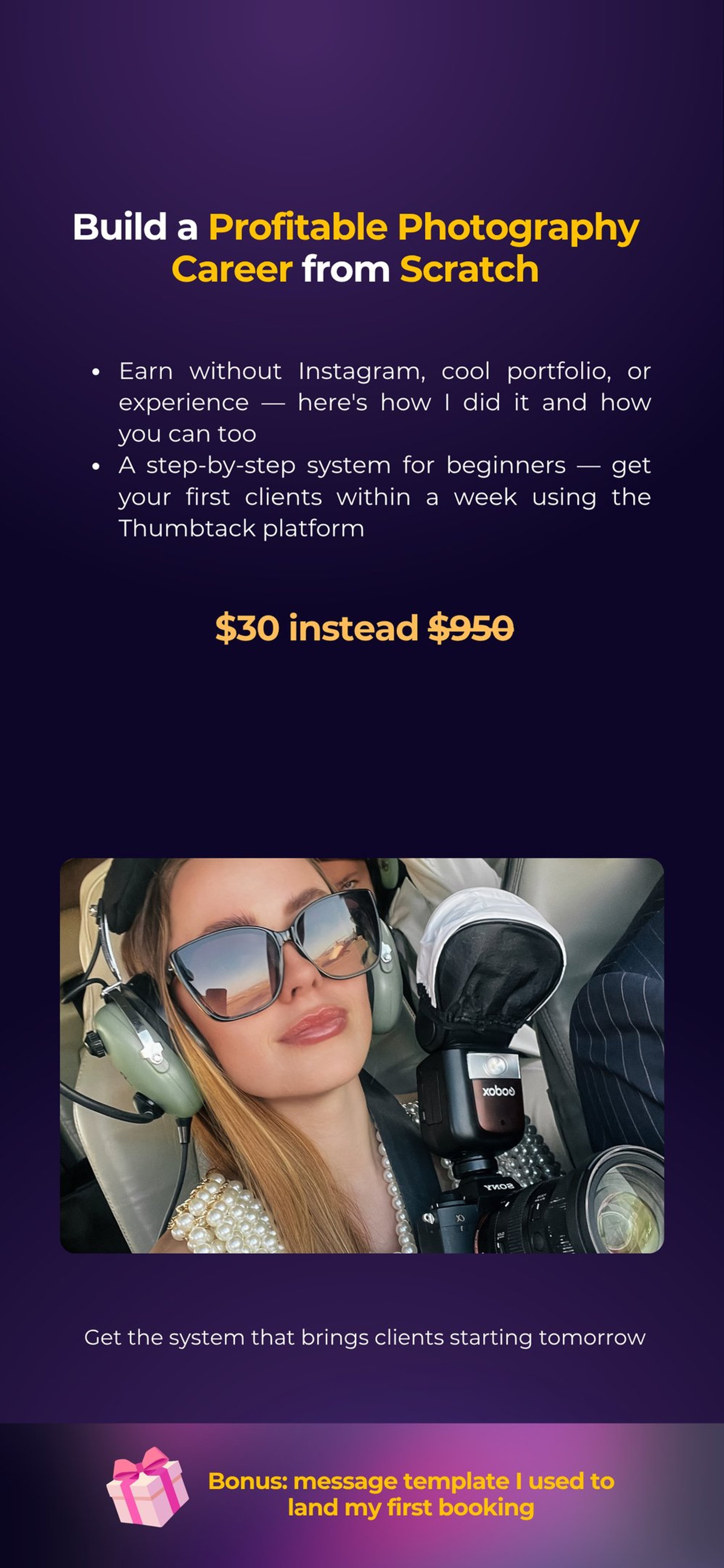 You don’t need to post every day or make Reels. In this course, Instagram is used only as a portfolio — it’s not your main promotion tool. You’ll learn how to get clients without content creation or paid ads.